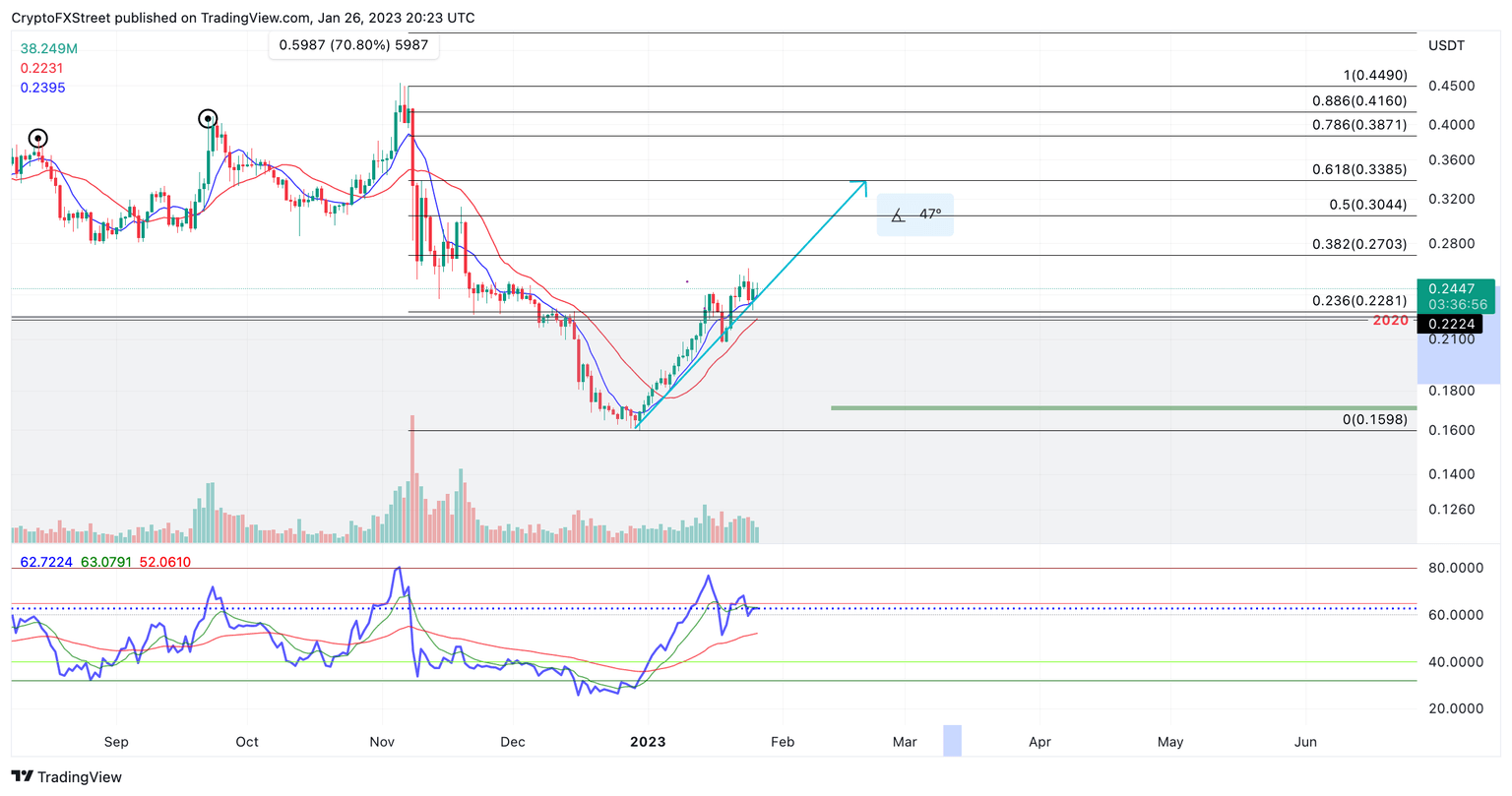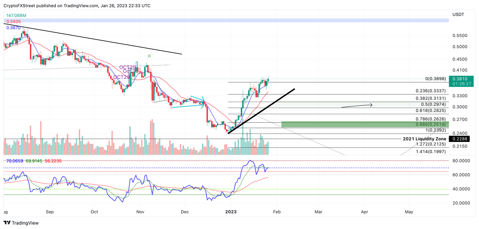 Cardano price points higher but faces resistance in the process. Key levels have been defined to gauge ADA’s potential price trajectory in the coming days. Cardano price continues to display bullish technicals as a new monthly high at $0.389 has been established on January 26.
