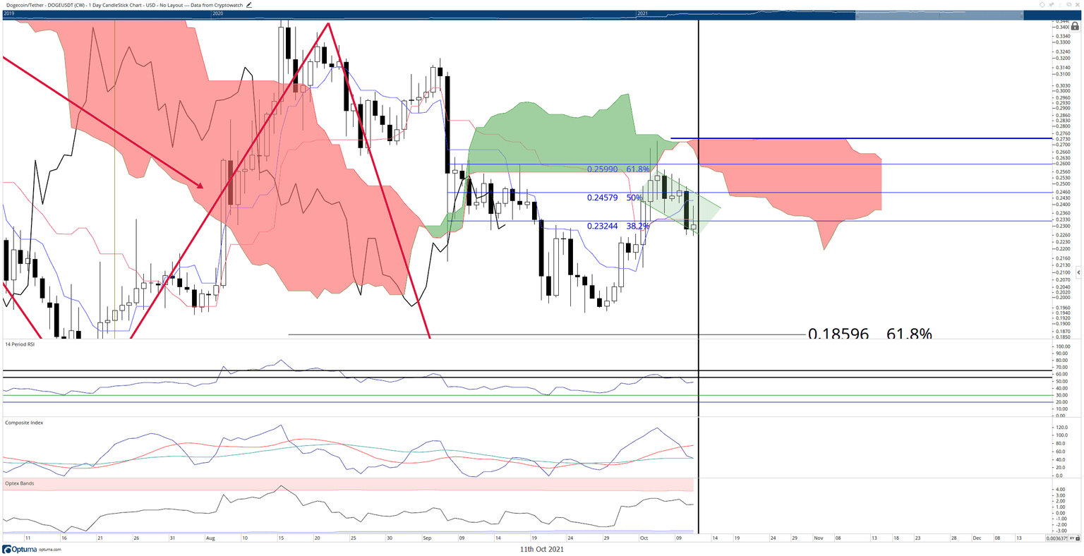 Dogecoin price may have triggered some fears of a resumption of some intense selling pressure after closing nearly -8% lower on Sunday. Those fears were easily justified given that the Sunday close was below the last primary support levels on the daily Ichimoku chart.