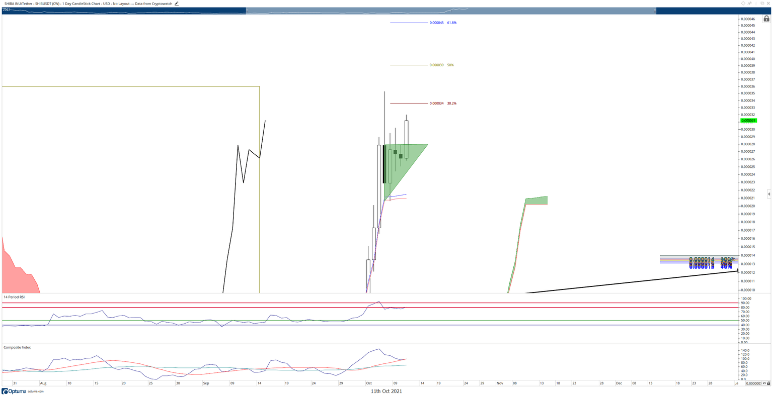 Shiba Inu price action has been a textbook model of technical analysis theory – the more extended consolidation, the more impactful any breakout. However, evidence of another leg higher exists and continues to develop. The market can remain irrational longer than you can remain solvent.