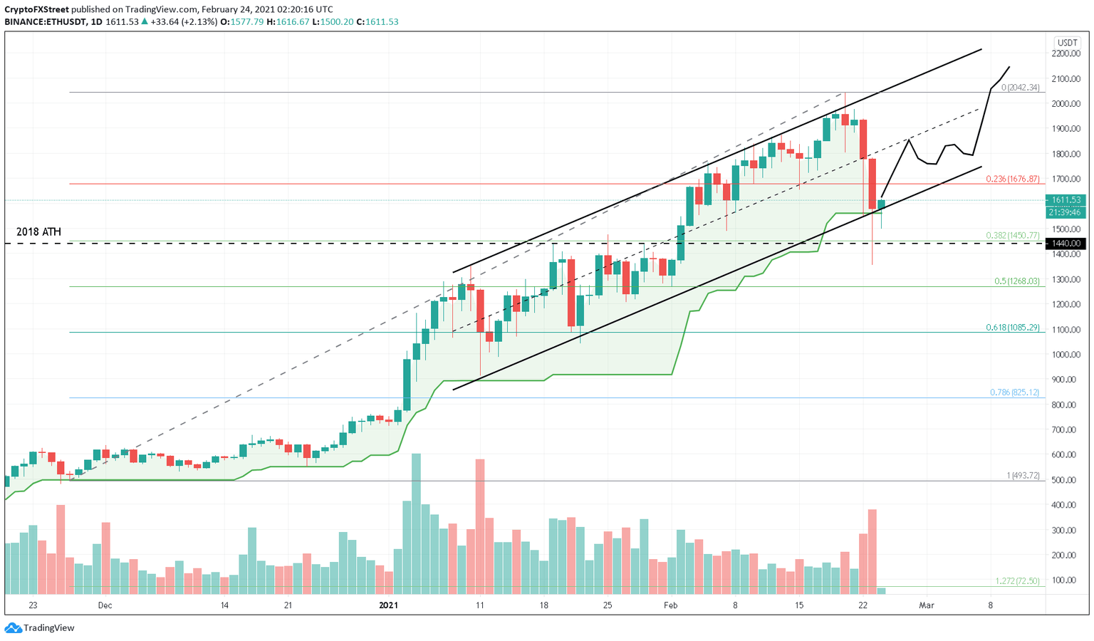 Ethereum price went as low as $1,355 during the recent sell-off. However, a closer look reveals that aggressive buyers around the 2018 highs pushed ETH’s one-day close to $1,577. As a result, ETH could see its market value increase shortly.