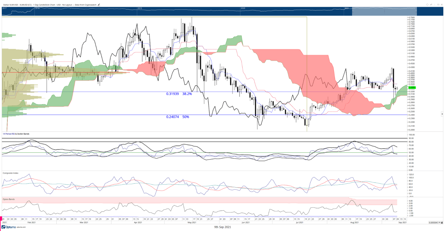 XLM price has consistently struggled to make any meaningful push against the critical $0.40 resistance level. The 2021 VPOC (Volume Point-Of-Control) is at $0.4042 and has acted as the primary obstacle for Stellar since August 13th, 2021. Now, the cross-border remittances token is under threat from holding $0.30 and could move down into the $0.20 value area.