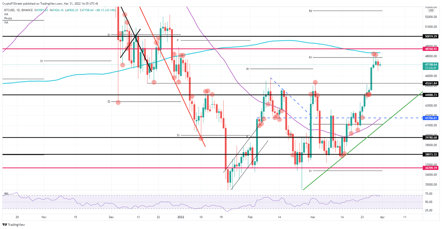 Bitcoin price, Ethereum and other cryptocurrencies are currently just off the highs of March and looking solid on positive news and a breakthrough in the peace talks between Russia and Ukraine. But sentiment has shifted during the European session on Wednesday, following data showing inflation in some countries in the eurozone approaching double digits, and this has pulled markets' attention back to the problem of rising price pressures. With EURUSD off the lows, and equity markets tanking, a significant tailwind that was helping cryptocurrencies could be set to fade and even turn into a headwind, as cold water is dampening any further beliefs of a truce or peace deal.