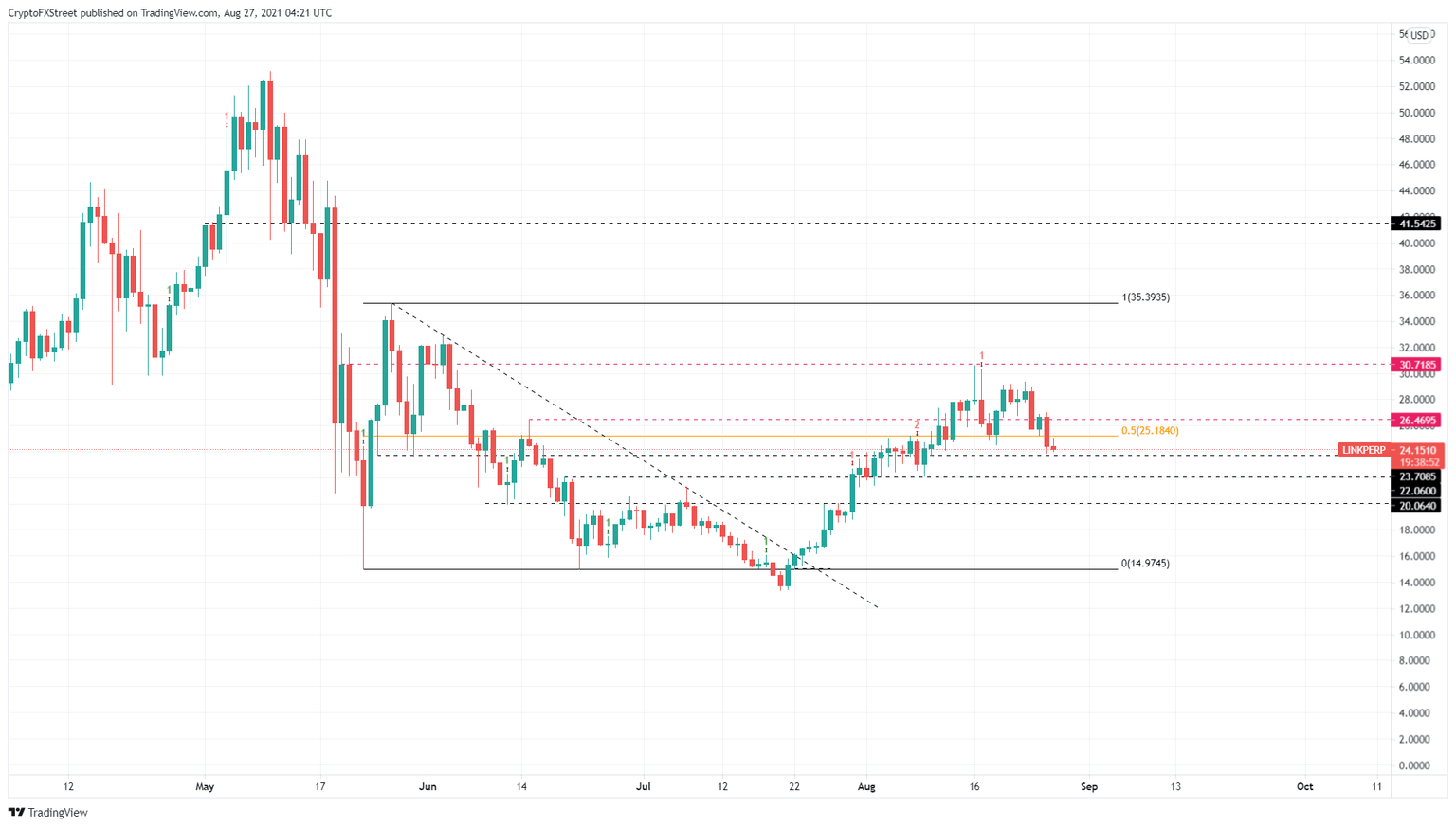 Chainlink price is hovering above the $23.71 support level, hinting at a potential rally. A bounce off the said demand barrier might push LINK up by 11% to 26.47. If the $22.06 foothold is breached, it will invalidate the bullish thesis. Chainlink price is hovering above a crucial support level and could witness a minor upswing before a firm directional bias establishes itself.