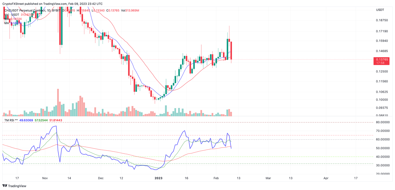 Chiliz price witnessed a 13% decline, making it the largest red day of 2023. The bearish influence should concern investors as it has reached significant levels of support, one being the 8-day exponential moving average and two, trendlines that provided resistance throughout the previous rally.