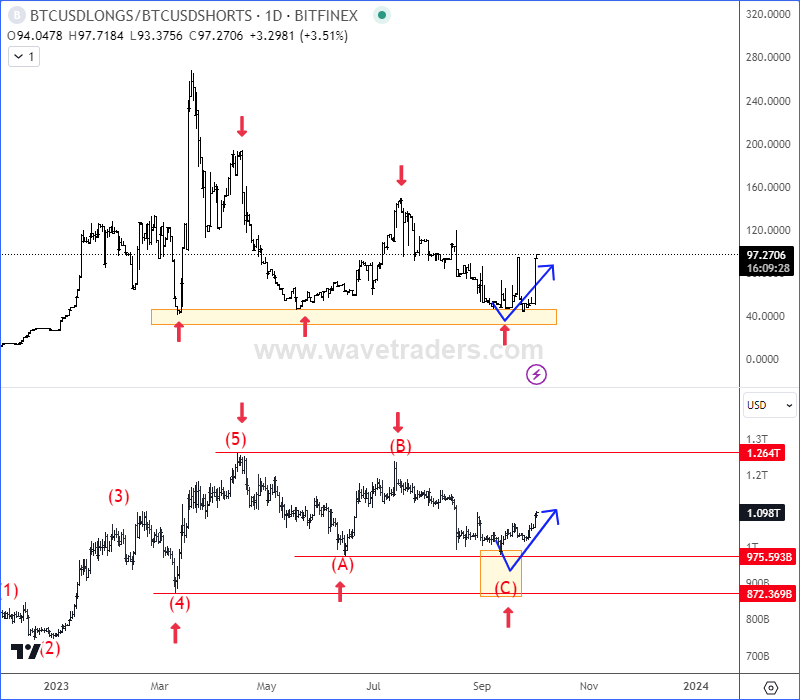 BTC Longs/Shorts ratio chart is telling us how traders are positioned. When BTC longs are at the lows while shorts are at the highs, traders are shorting the market, so market can react opposite as the crowd, which means that Bitcoin and ALTcoin friends can be ready for a recovery.