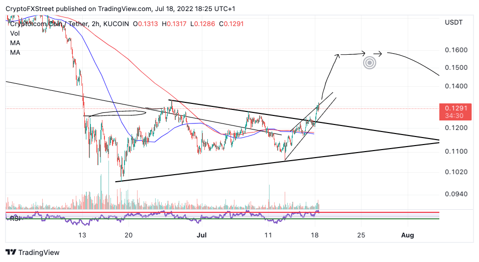 Crypto.com price has risen 10% over the weekend. The bullish influx is taking traders by storm as the crypto market is witnessing the strongest recovery since the last week of June. Still, the market shows further upside potential. Crypto.com price ascends in wedge-like formation, which is likely to prematurely entice bears to open short positions.