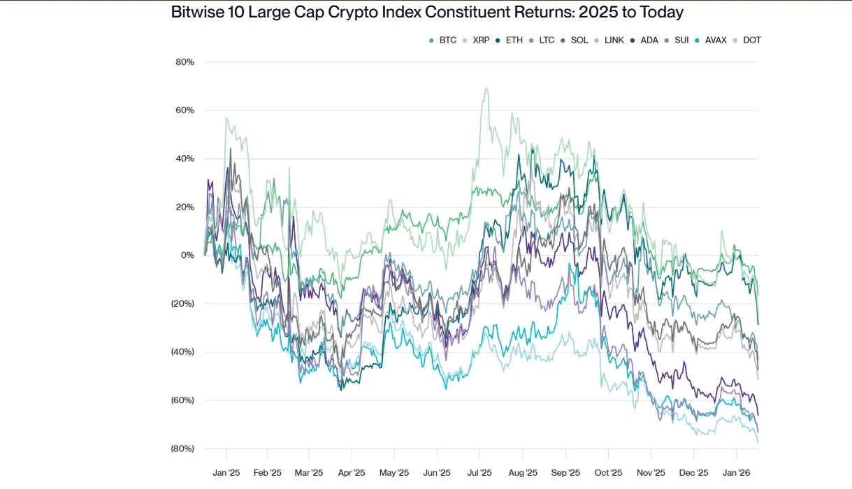 The crypto market has been in a "full-blown" winter season since January 2025, following a 39% and 53% drop in Bitcoin (BTC) and Ethereum (ETH) prices from their all-time highs over the past few months, according to Bitwise Chief Investment Officer Matt Hougan.