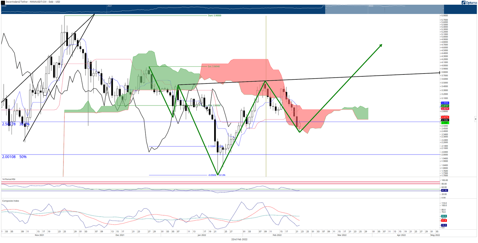 Decentraland price could generate some major surprises across the entire cryptocurrency space. Despite six days of losses, it has maintained support within the Ichimoku Cloud and is now poised for a strong bullish breakout. Downside risks exist and could be extensive if support fails.
