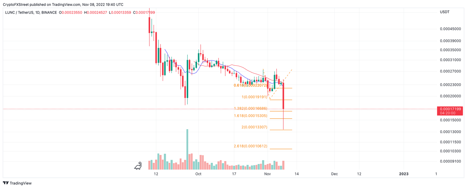 Terra's Luna Classic price is witnessing a devastating market decline. Now that new yearly lows have been established for the LUNC token, the downtrend targets extreme levels below. Key levels have been identified to gauge Luna Classic's potential landing ground.