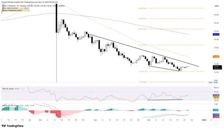 Avalanche (AVAX) trades above $12 at press time on Tuesday, following a 2% rise on the previous day. The layer-1 blockchain token shows signs of recovery, with active addresses hitting a monthly record high in December, and large wallet investors, commonly referred to as whales, are backing the renewed risk-on sentiment in the derivatives market. Technically, AVAX upswings within a descending falling wedge pattern, with bulls eyeing a potential breakout rally.
