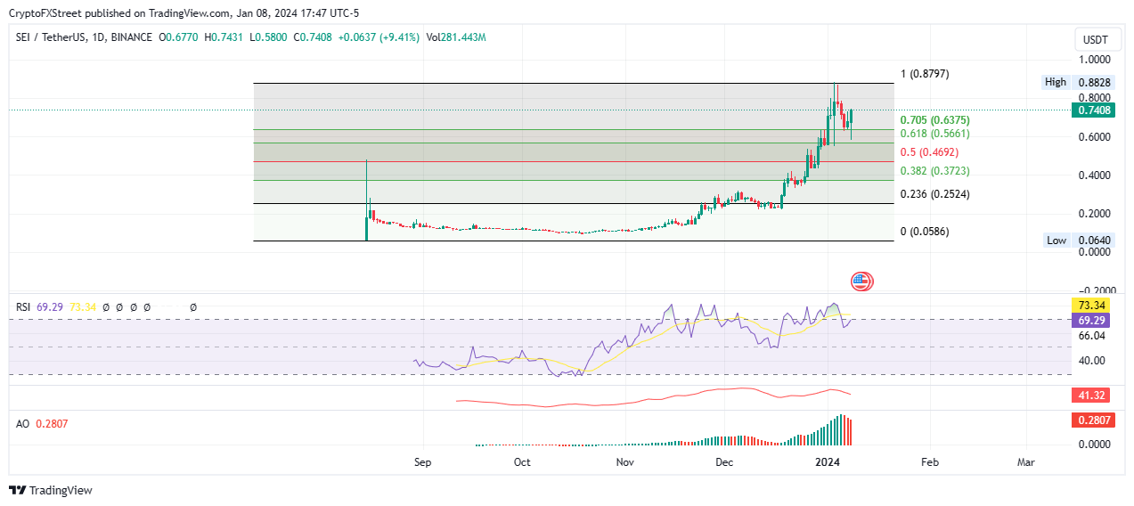 Sei (SEI) price topped out after a massive rally beginning late November when the multi-month consolidation exhausted. Bearing the brunt of an overbought asset, SEI pulled back as the bulls took a breather, and are now making a comeback that could see the cryptocurrency reclaim its peak and potentially record a higher high.