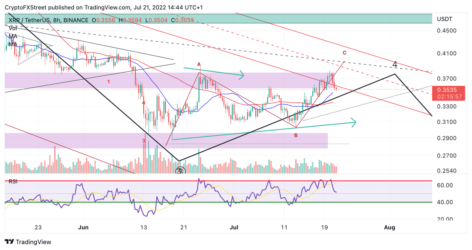 XRP price market sentiment accompanies the most recent upswing. However, from a technical standpoint XRP price still faces strong resistance. Ripple’s XRP price is running high on hope as the digital remittance token consolidates in the mid $0.35 range.