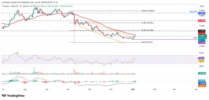 Cardano (ADA) steadies above $0.40 at the time of writing on Monday after a decisive close above the falling wedge pattern in the previous week. The derivatives market supports improving sentiment, with ADA’s Open Interest (OI) rising and long bets increasing among market participants. However, traders should be cautious as escalating geopolitical tensions between the US and Venezuela, and later Colombia, could cap further gains in ADA.