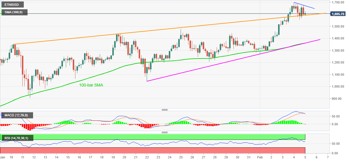 Ethereum bulls shrug off the previous day’s consolidation from the record top while regaining the upside momentum around $1,620 during early Friday. In doing so, the ETH/USD quote bounces off the previous resistance stretched from January 10.