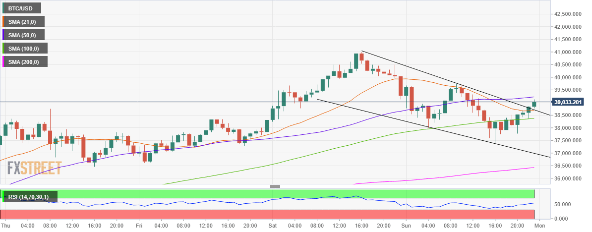 Bitcoin (BTC/USD) is making another attempt towards the $40,000 mark in early Asian trades, having failed to find acceptance above that level last week. 50-HMA could challenge the bulls’ commitment. RSI edges higher above the midline, backing the upside break.