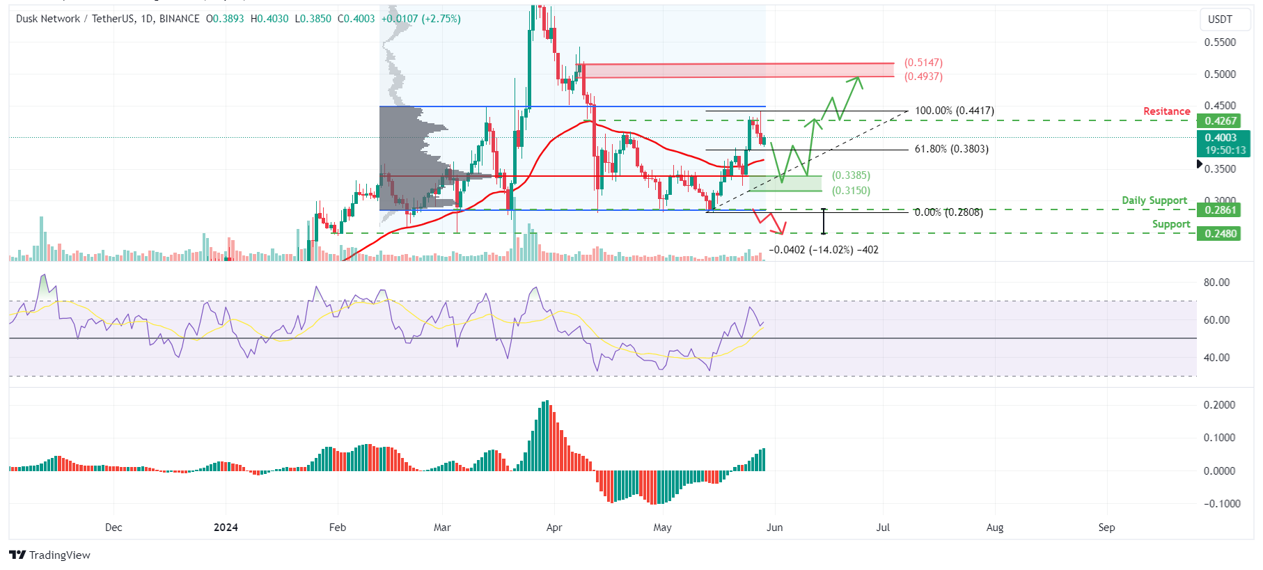 Dusk (DUSK) price is currently being rejected at a key resistance level, which could lead to a short-term correction. But on-chain data show a spike in network growth and movement in inactive wallets, both of which, indicate that the bulls are preparing for their next move.