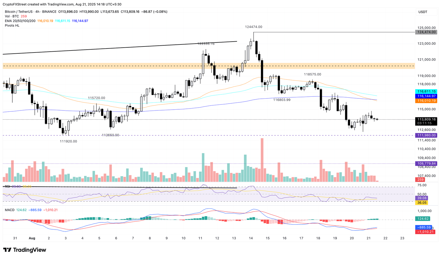 Bitcoin price stabilizes around $113,500 at the writing on Thursday after falling over 8% from its all-time high of $124,474, set on August 14, and reaching a low of $112,380 on Wednesday. Traders take a cautious stance as the Minutes from the late July Federal Open Market Committee (FOMC) policy meeting, released on Wednesday, read on the hawkish side, with participants more worried about inflation than the labour market.
