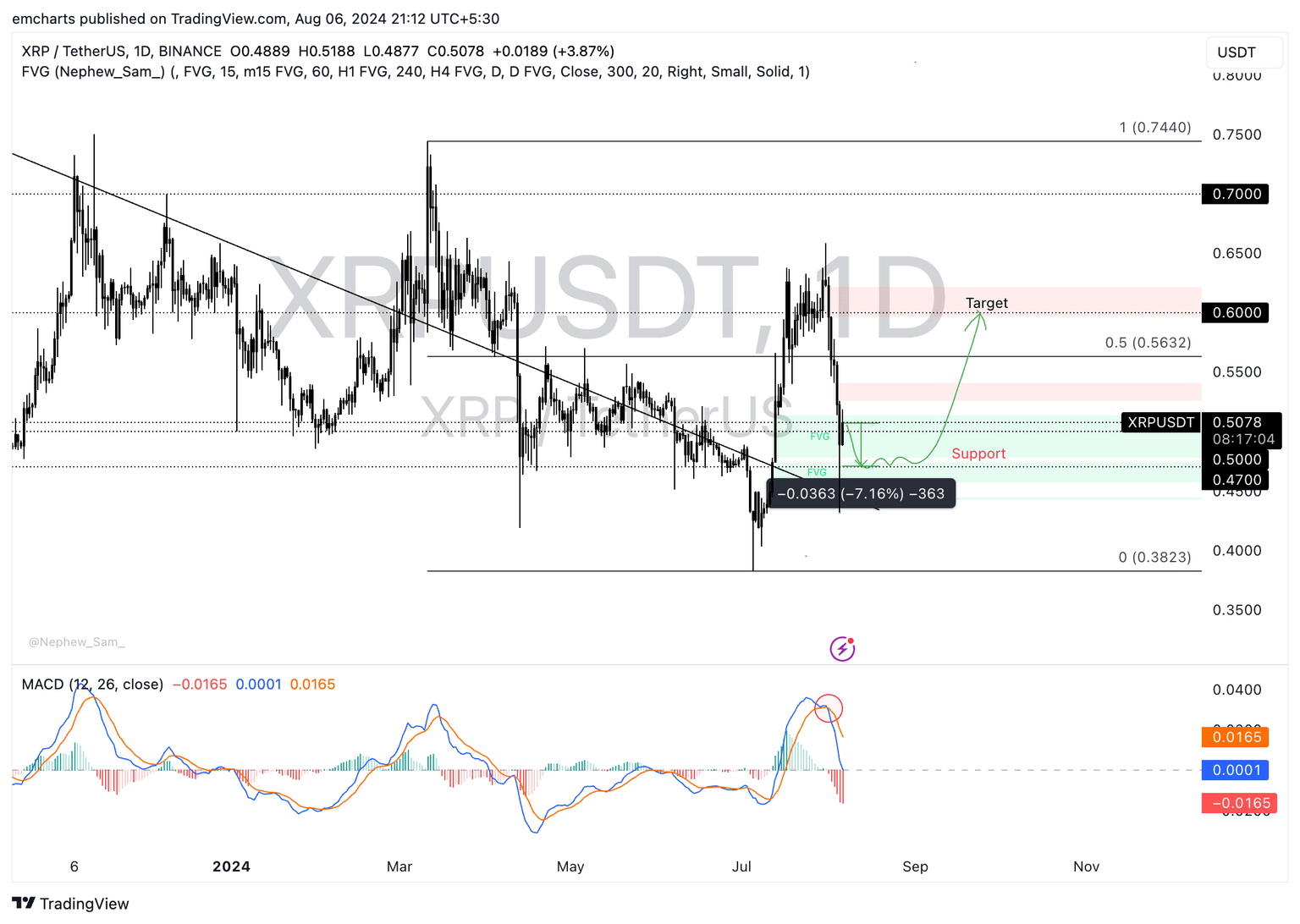 Ripple (XRP) suffered a steep correction in the crypto market carnage on Monday. XRP slipped to a $0.4300 low, its lowest level since mid-July, on August 5.