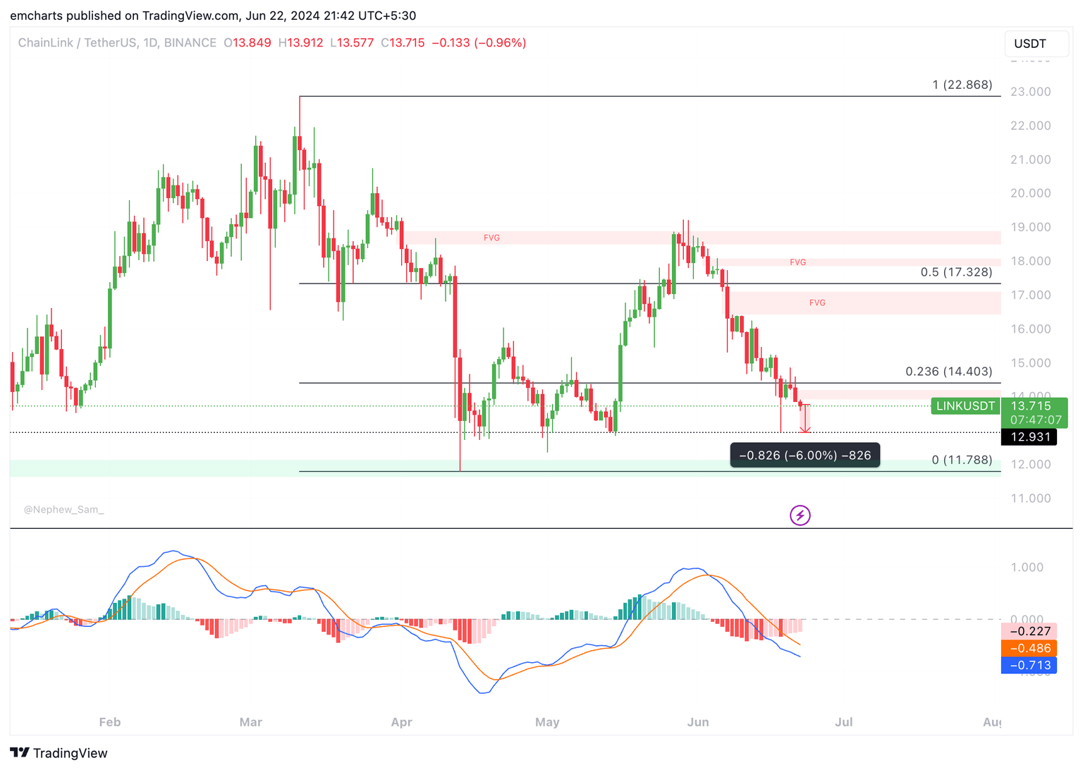 Chainlink (LINK) supply on exchanges climbed to 230.43 million on June 21, a massive spike in a 24 hour period. Typically, an increase in the asset’s supply has a negative impact on price as it increases the selling pressure.