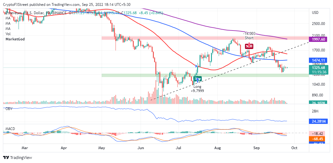 Ethereum price trades at $1,323 on Sunday, several days after sliding to $1,200. It was a surprise that the largest smart contracts token would give up most of its gains during and after the much-publicized Merge. On-chain data shows a significant reduction in the Ethereum Supply.