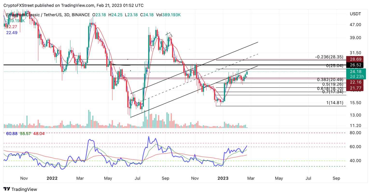 Ethereum Classic price continues to stair-step north during the third week of February. Traders should maintain a close watch on the digital asset as it seems poised for a 20% rise.