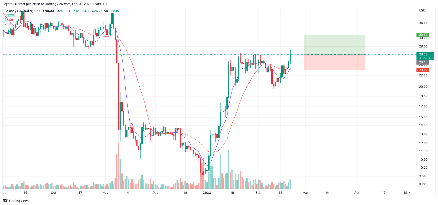 Solana price has displayed strong bullish technicals during the first three weeks of February. At the time of writing, the Solana price stands 27% above where it once stood ten days prior. The flux of buying momentum is visible on the upright looking trend. While skepticism remains a prevalent factor amongst traders, SOL's recent price action seems unfazed by retail opinion and inflation fears.