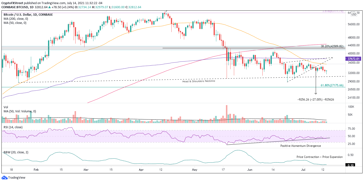 Bitcoin price continues to tighten, compressing the Bollinger Band Width (BBW) to the lowest reading since October 15, 2020. Ethereum price briefly loses grip on the critical ascending trend line originating in March 2020, but beware of a bear trap. XRP loses pivotal $0.650 support, but Average True Range (ATR) has compressed to the early April levels, hinting at incoming volatility.