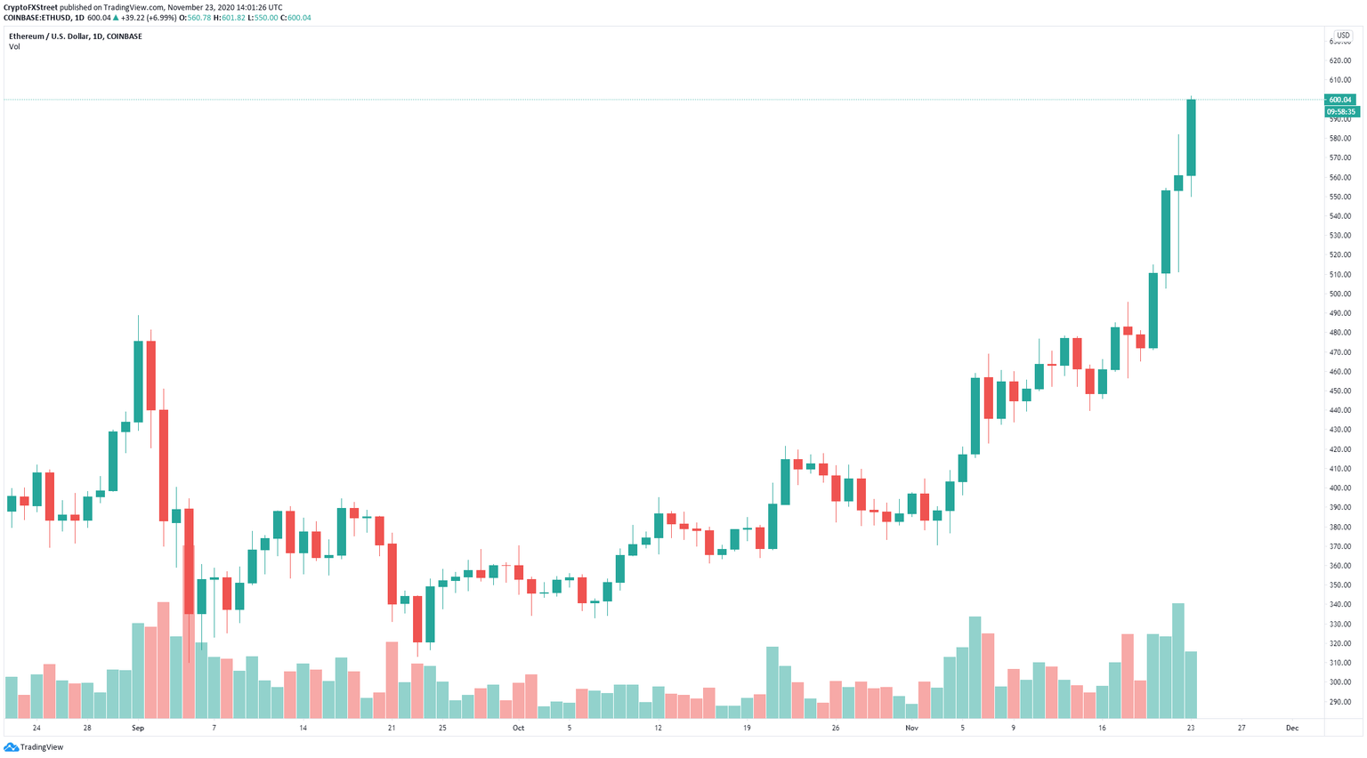 Ethereum price breaks $600 in anticipation of ETH 2.0’s launch in December