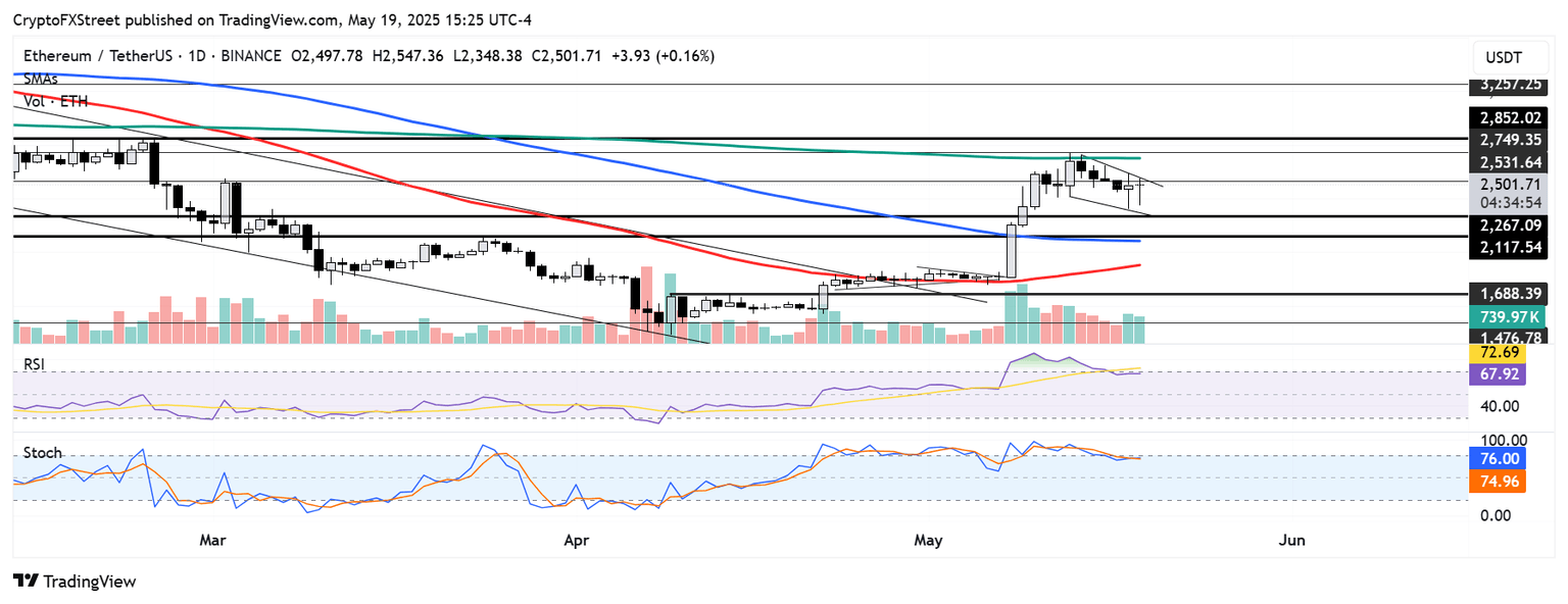 Ethereum (ETH) trades around $2,500 on Monday following mixed signals across its on-chain metrics. While strong buying pressure is visible across ETH products and whale balances, hedge funds and traders are boosting their short positions.