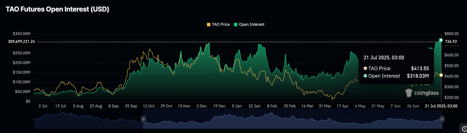Bittensor (TAO) holds above $430 on Monday after extending its recovery by 50% from June lows of around $287. The token backing the open-source protocol for machine learning models shows signs of steadying recovery toward $500 in upcoming sessions, especially if the derivatives market holds steady.