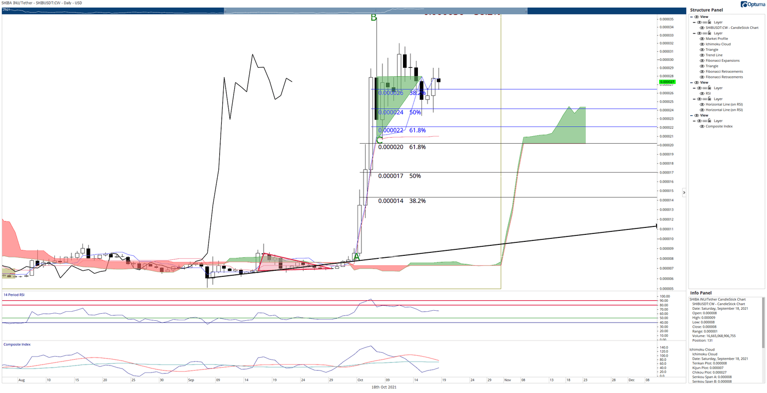 Shiba Inu price continues to consolidate after making massive gains. A false breakout above an ascending triangle could trigger a deeper corrective move. Strong support exists if a deeper pullback does occur. Shiba Inu price has, in a surprise to many, maintained the majority of its huge rally. While Dogecoin killer Shiba Inu has made gains over 340% from the October open, it is still up over 280% despite the recent pullbacks. However, it could dip a little lower.