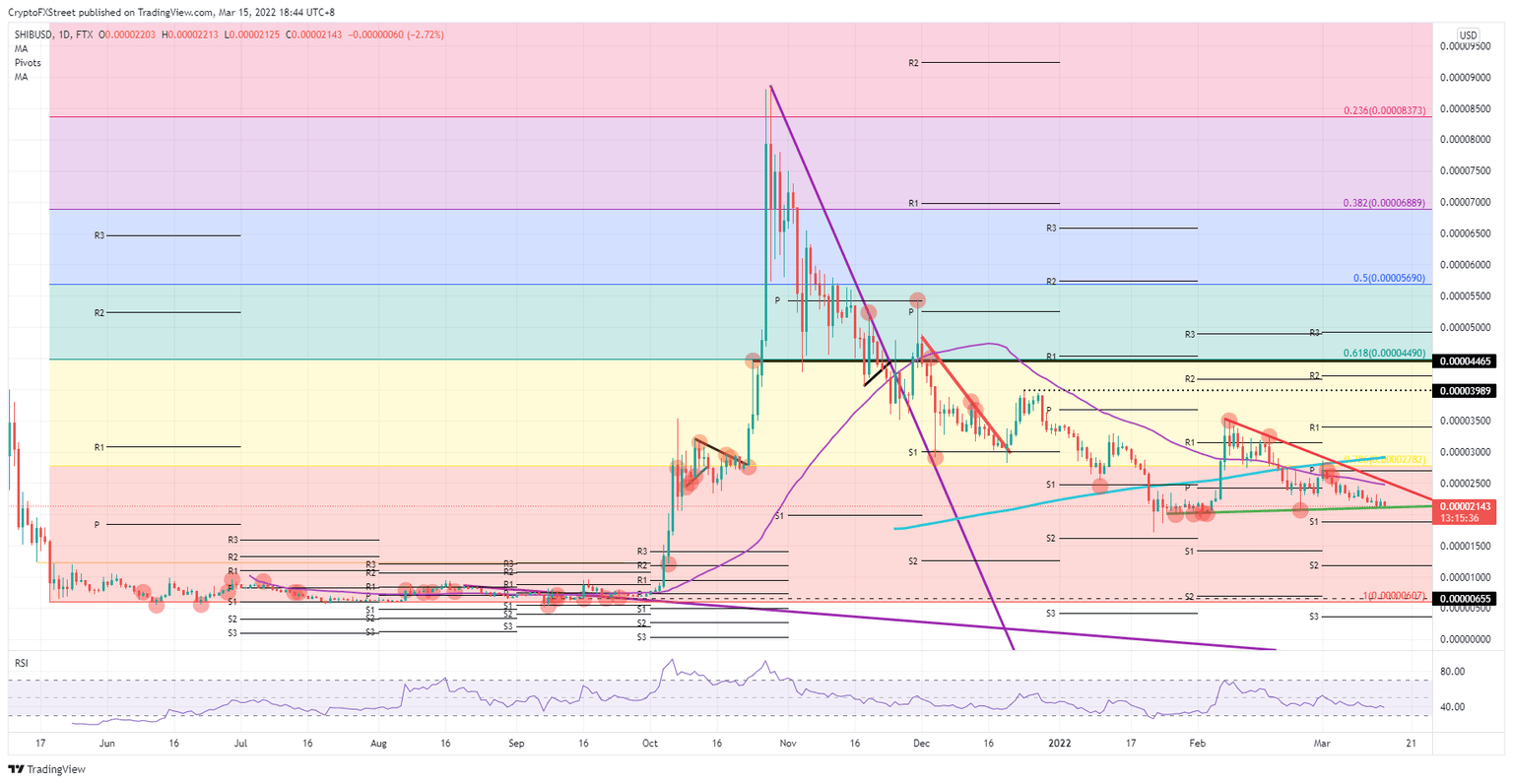 Shiba Inu (SHIB) price action is on the cusp of breaking out of a bearish triangle that has dictated price action over the past two months. With a break to the downside, room opens up for an almost 70% drop towards the lowest levels in its existence as investors flee cryptocurrencies overall, following more and more reports that global markets are going into recession. With this dire projection in mind, expect to see further bleeding of SHIB price action as it falls back to $0.00000655.