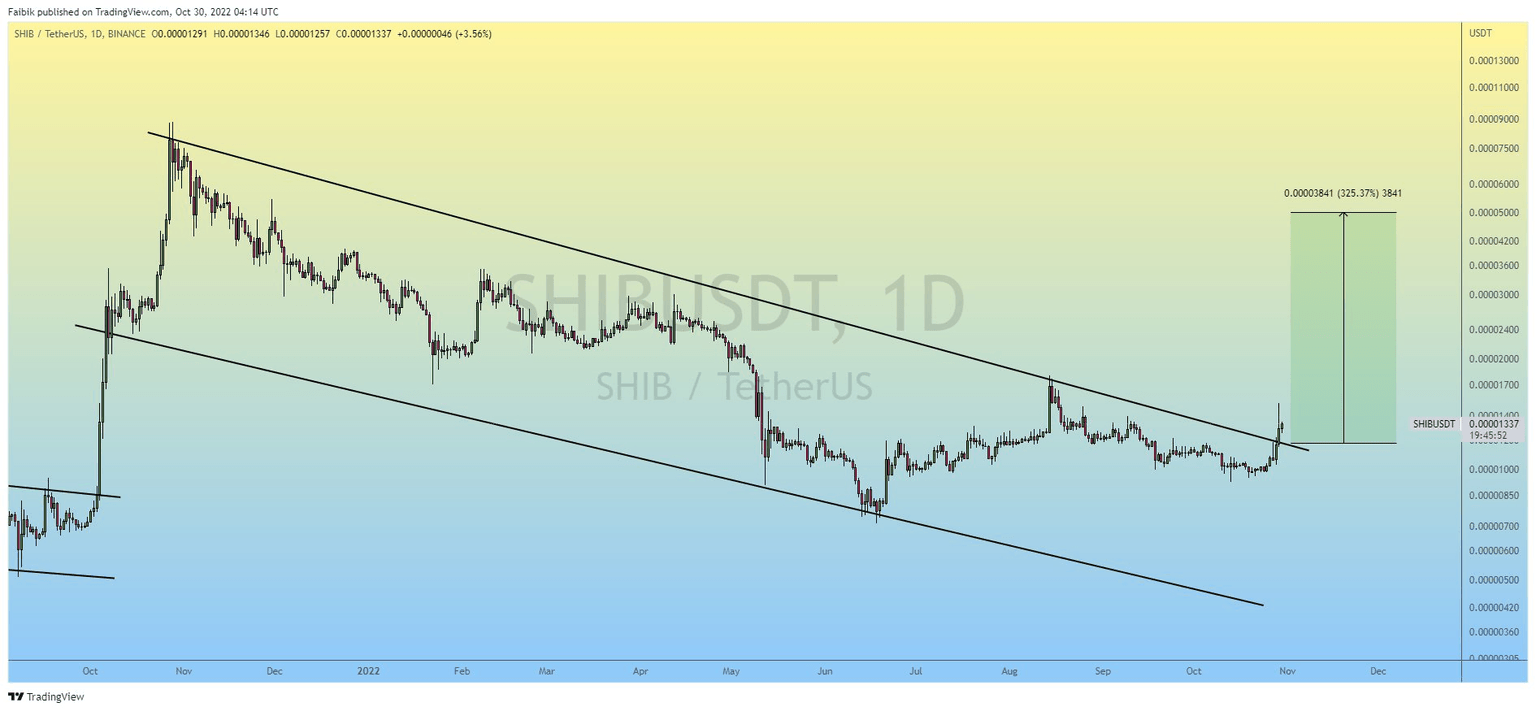 Shiba Inu burn rate is up 443% overnight, fueling a bullish sentiment among SHIB holders. Despite yielding nearly 20% gains overnight, Shiba Inu is 84.2% below its all-time high of $0.000086. Analysts believe Shiba Inu is following in the footsteps of Dogecoin, breaking out from a long-term downtrend.