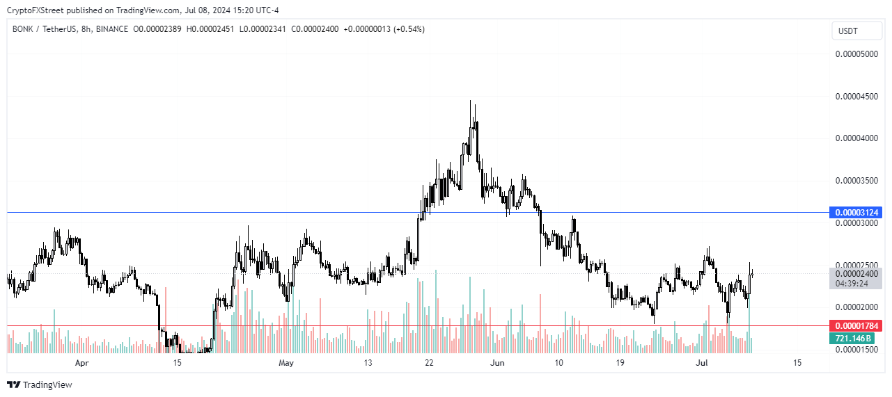 BONK rallied nearly 8% on Monday as the meme coin began its recovery from heavy losses experienced following the Mt.Gox repayment going live and German government BTC offloading. PEPE also joined in the recovery, posting a 6% gain as bulls look to be buying the dip.