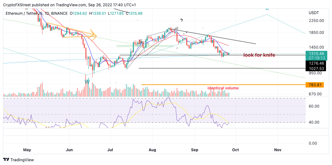 Ethereum price has yet to retaliate against the bearish onslaught experienced this month. Since September 10, the bears have forged a steep decline suppressing any attempts for a V-shaped retaliation. The downtrend fuels the newly developing bearish sentiment surrounding the Ethereum Merge.