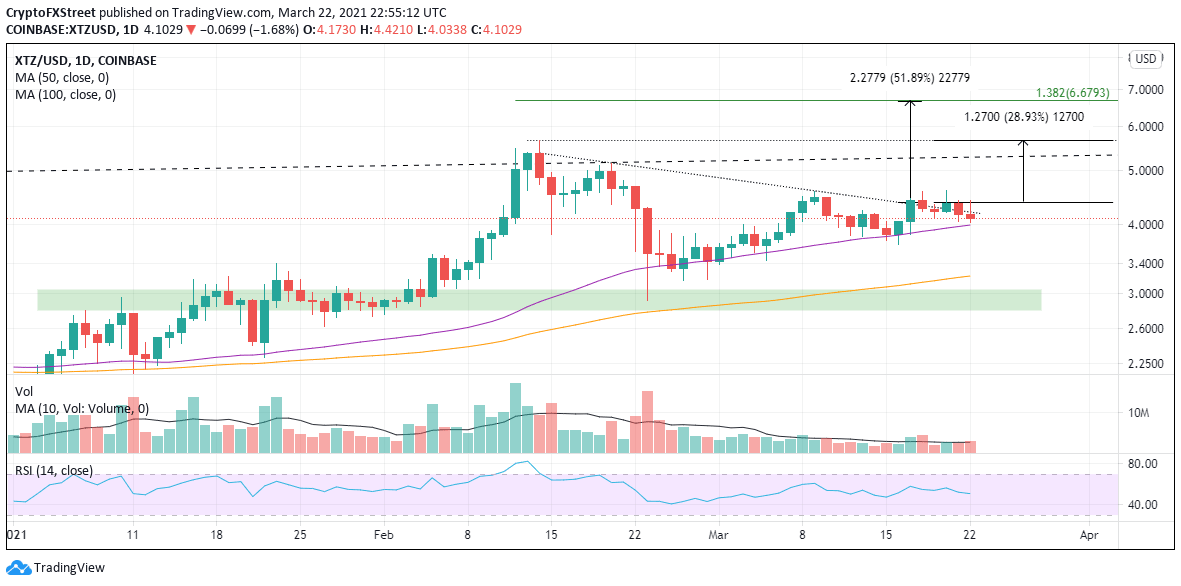 Tezos (XTZ) price broke out on March 17 with a 9% gain on a 50% increase in average daily volume. It was the type of price action that bulls wanted after the long consolidation along the 50-day SMA. However, over the last five days, XTZ has been drifting lower and is currently trading below the downtrend line.