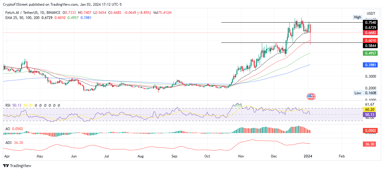 Fetch.ai price risks a 10% drop as the 25-day EMA support lets loose