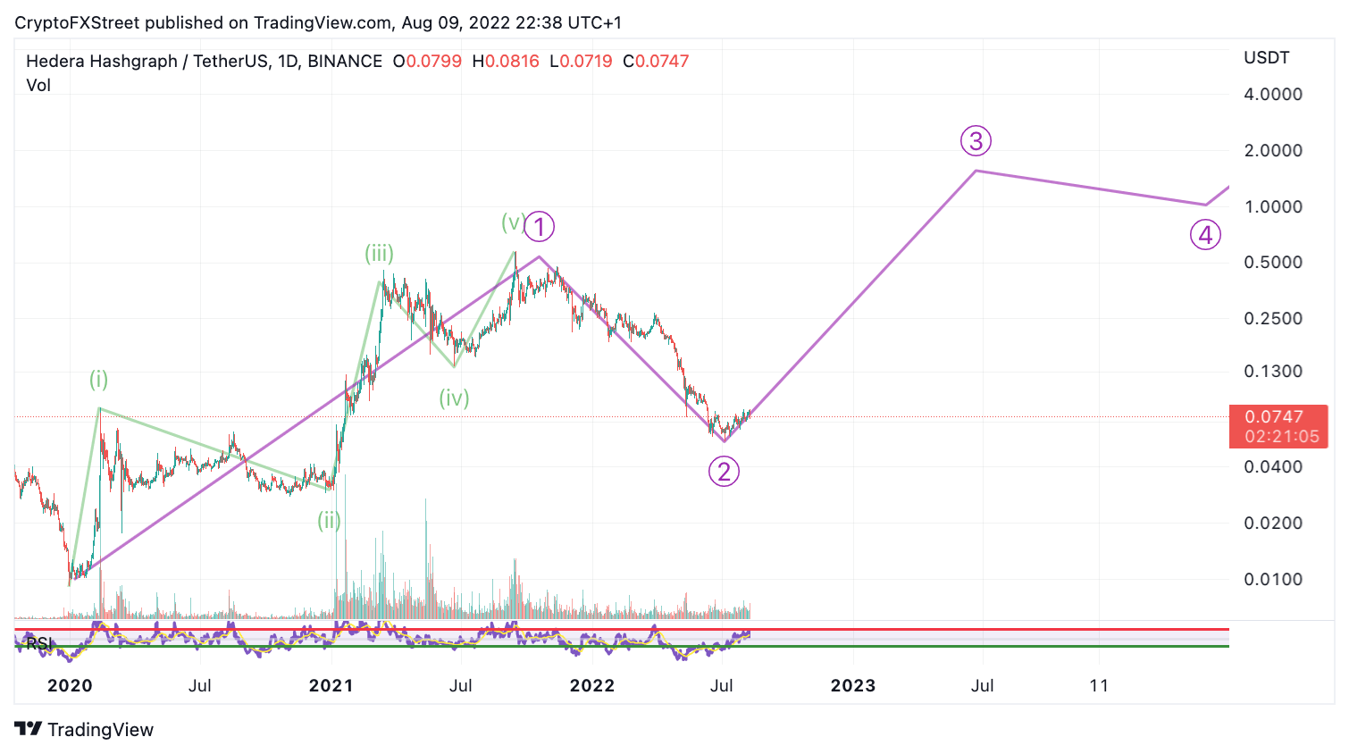 HBAR price shows a drop in volume amidst the current downtrend. Hedera Hashgraph has the potential to rally towards 2000%. Traders should keep the smart contract alternative token on their watchlists and consider a dollar cost average approach for investing.