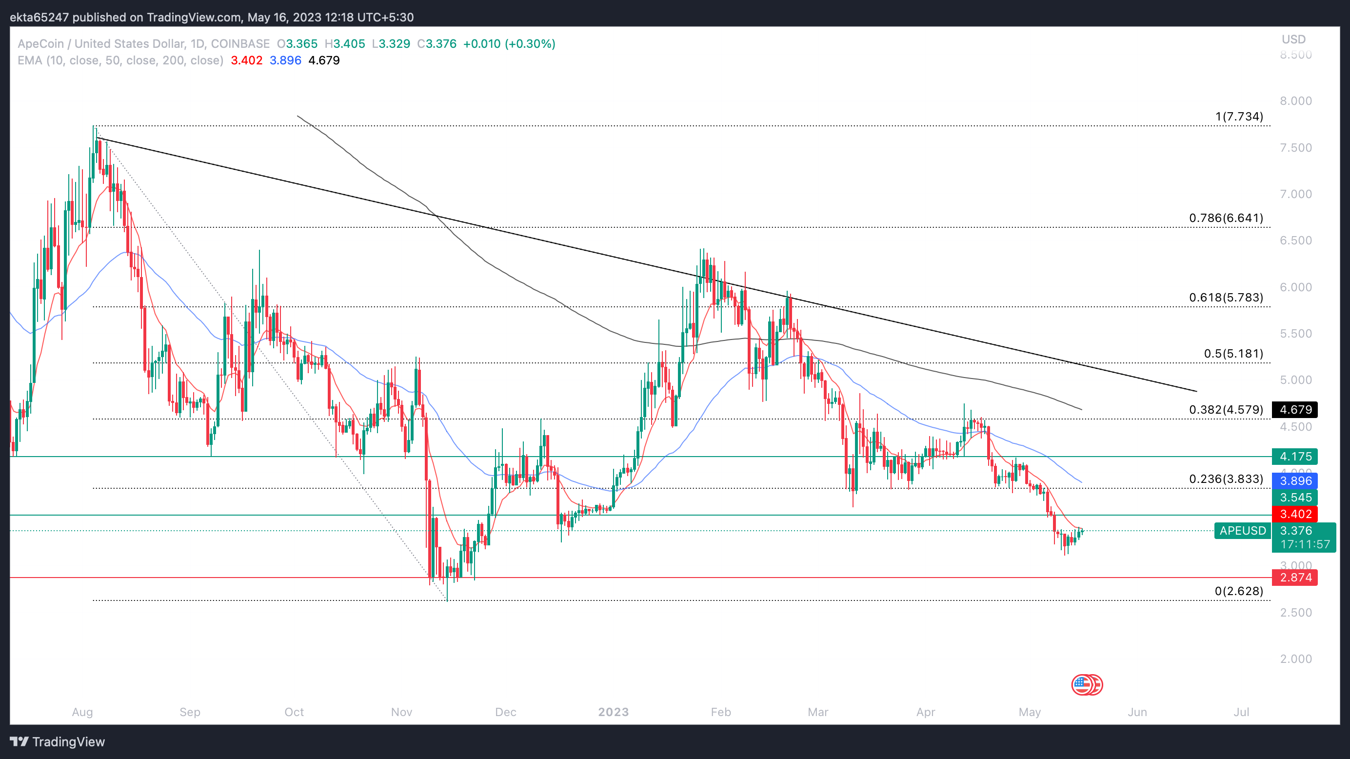 ApeCoin, one of the largest NFT tokens, has a scheduled token unlock on May 17. 15.6 million APE tokens, or 1.6% of the asset’s supply and worth $52.7 million, will be unlocked. APE is trading at $3.39 at the time of writing, after yielding 2.5% gains overnight, as holders gear up for the token unlock.
