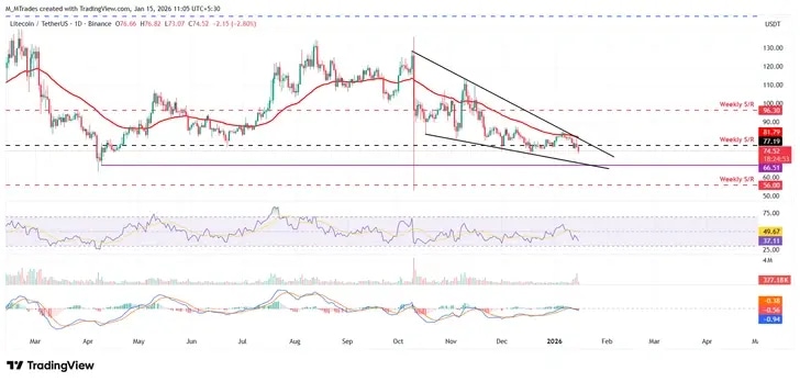 Litecoin (LTC) price extends losses, trading below $75 at the time of writing on Thursday, after failing to break through the key resistance zone. The rising activity among the dormant wallets supports the bearish sentiment. Meanwhile, technical analysis suggests further downside, as momentum indicators continue to weaken.