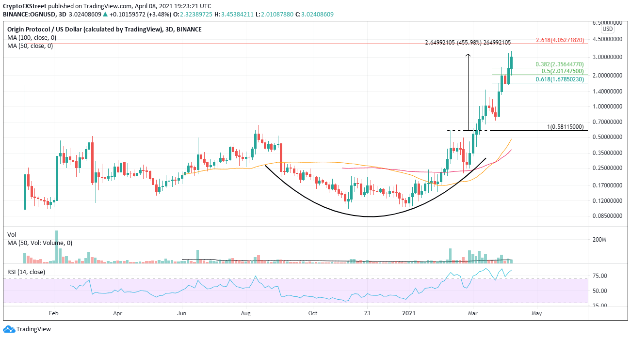 Origin Protocol price has rallied approximately 460% from a cup-with-handle primary base triggered just in early March, and the measured move target has been reached. Upside will be limited in the short term. Cup-with-handle measured move target has been reached.