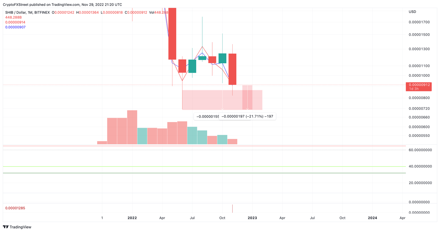 Shiba Inu price has investors honing in as the monthly settle may provide context for SHIB's future price action. The bears are clearly in control of the trend, but there are subtle signs of bullishness that should be investigated. Due to these factors, SHIB could witness an influx of volatility in the coming days.