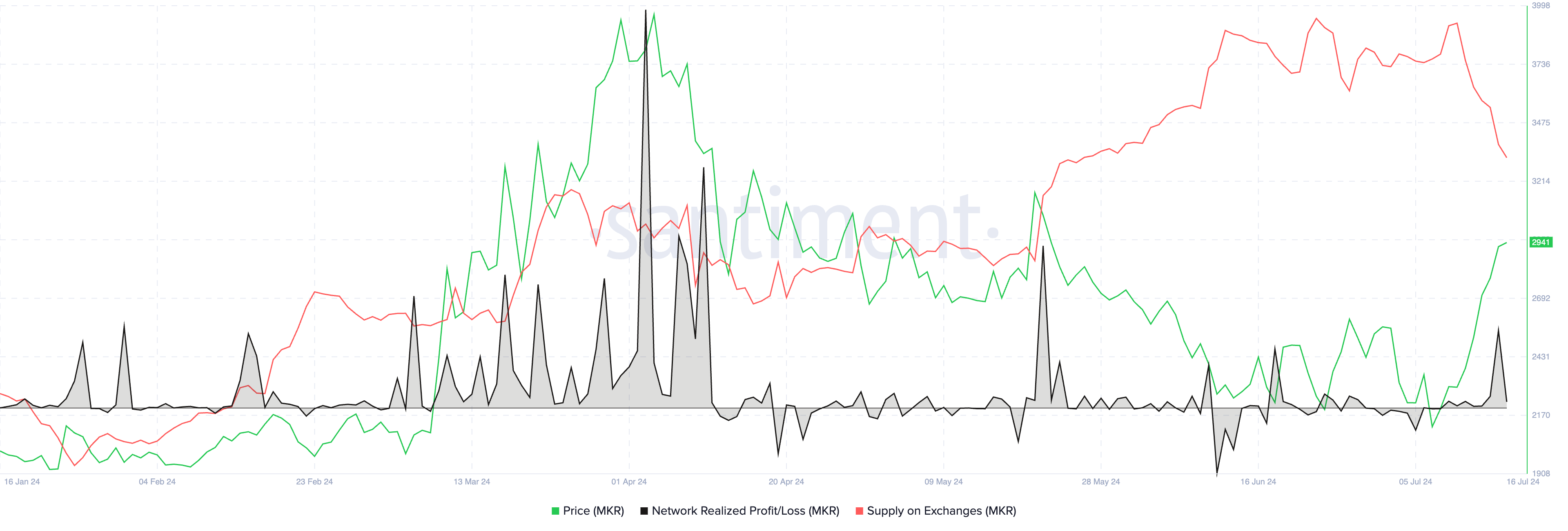 Maker (MKR) extended gains by nearly 33% in the past seven days, as seen on Binance. On-chain data shows that even as Maker holders take profits on their MKR holdings, the governance token sustains above key support.