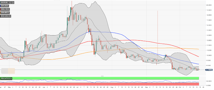 Ripple’s XRP peaked at $0.3041 on October 17 and retreated to $0.2890 by the time of writing. The third digital coin with the current market capitalization of $12.5 billion has lost nearly 5% of its value on a day-on-day basis, though it is still in the green zone on a day-on-day basis. The bulls failed to keep the price above the psychological $0.300 and lost the initiative to the short-term sellers.