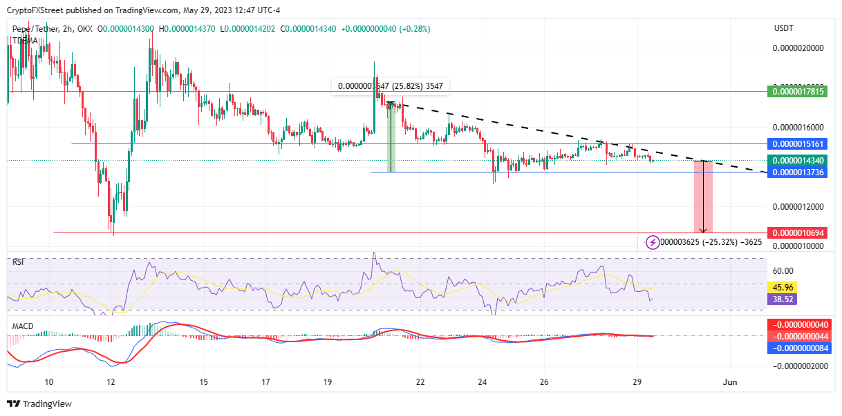 Pepe (PEPE) price has shown a lack of buyer participation throughout May, switching between neutral and bearish biases as the meme coin's hype and sensation eased. The lack of momentum for PEPE was so extreme that it failed to react to Bitcoin (BTC) price's influence over the weekend as crypto markets rallied.