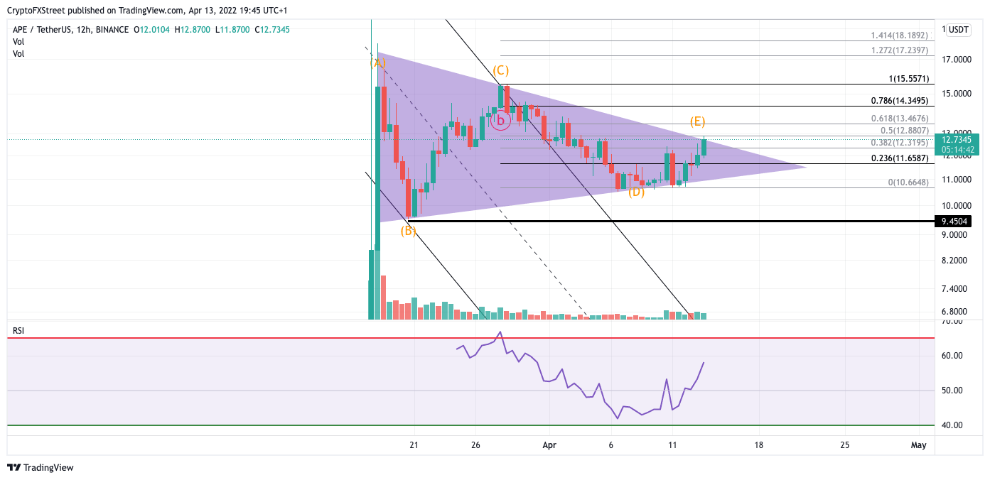 ApeCoin price is treading treacherous waters as the price has rallied 20% this week. Overzealous traders should be aware of the macro outlook on APE price. ApeCoin price has delivered more confluence of a symmetrical triangle formation following this week’s 20% rally from the $0.10 lows.