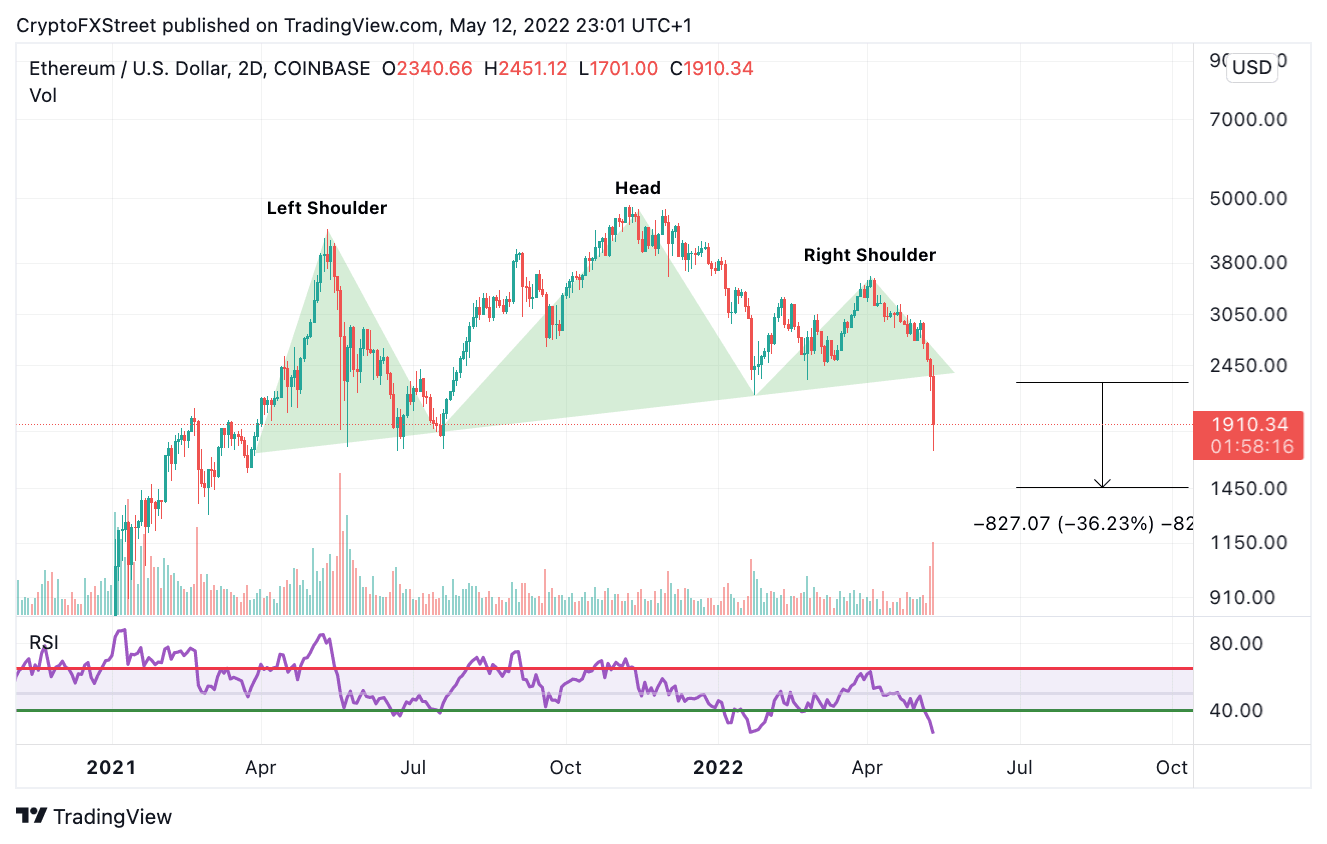 Ethereum Price Head and Shoulders pattern forecasts a drop to $1400