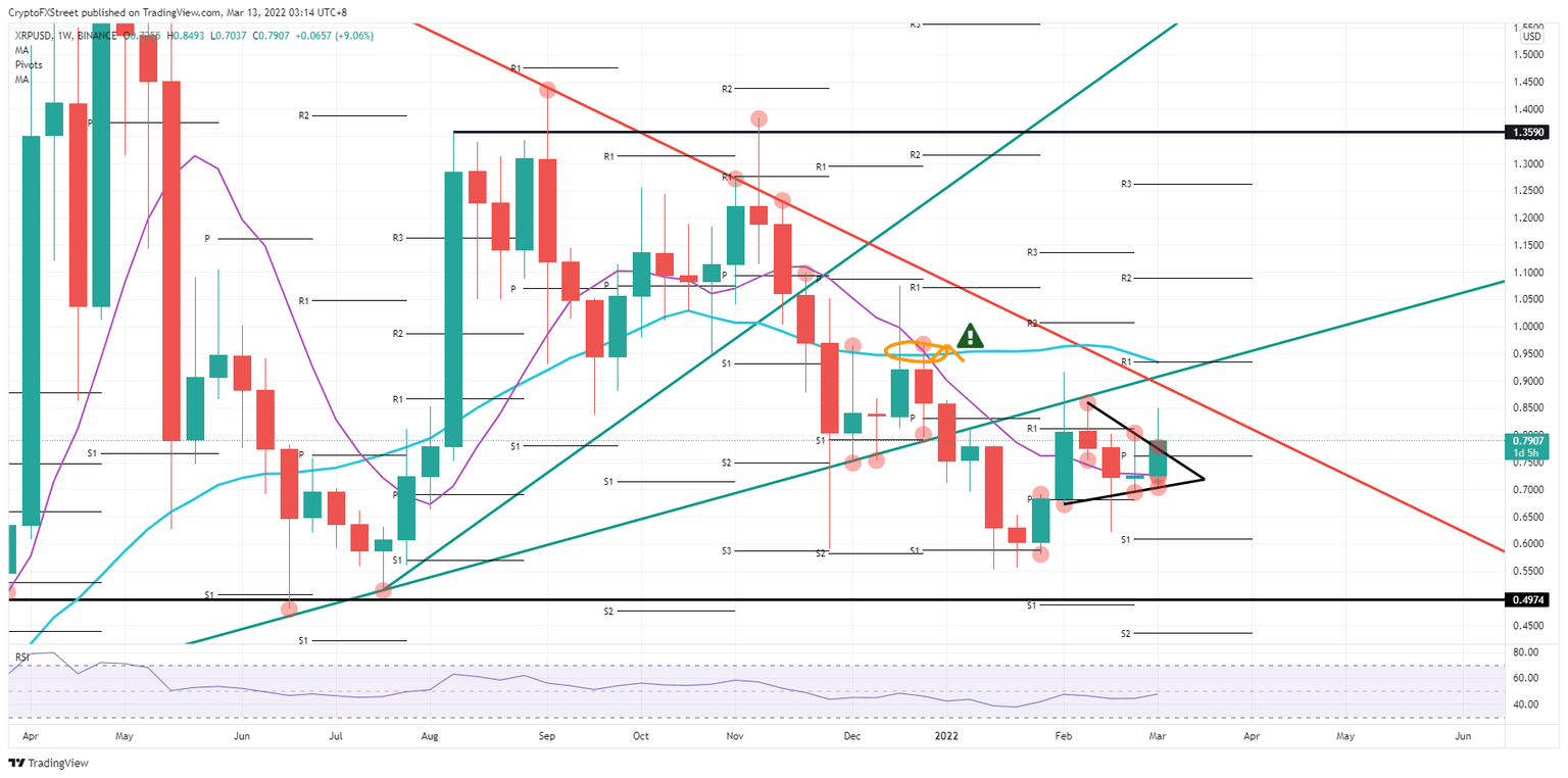 Ripple (XRP) price action sees its price action further respecting a longer-term pennant that has been there for over a month. Last week was a perfect test on the low and the high barriers, and again this week, price action looks set for a breakout next week.