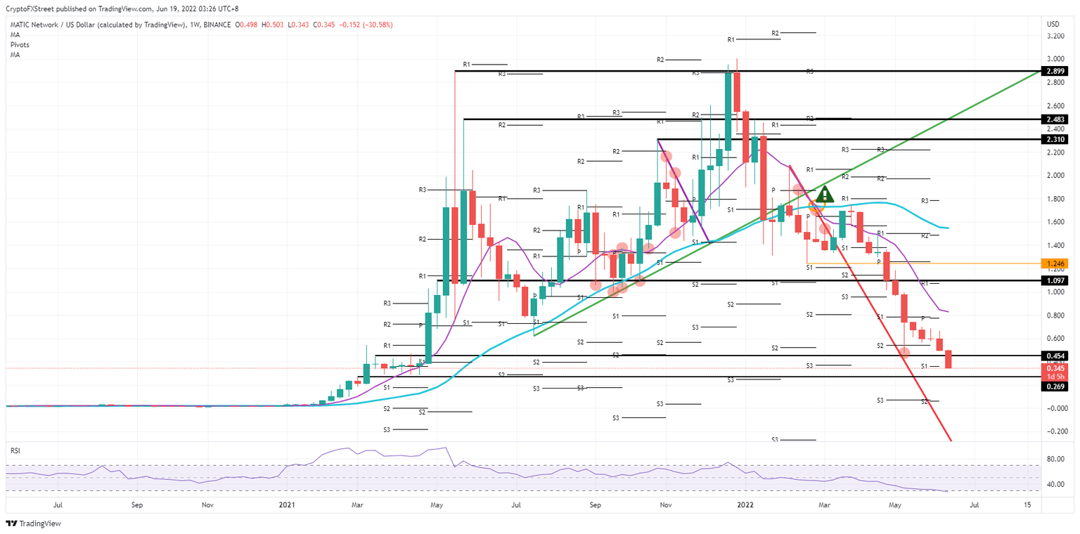Polygon (MATIC) price is set to book its eighth straight week of losses, even eleven if you do not count the marginally profitable week from mid-April. MATIC price already trades in cents, once the defense breaks, it could even be trading in tenths of a cent. With that, MATIC price could become worthless and obsolete.