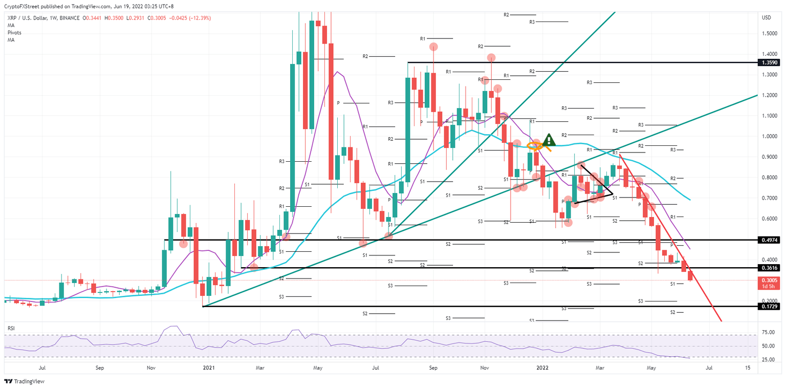 Ripple price sees massive outflows of funds as the demand-side dries up. XRP price is too far off from the upper barrier to make a return and can only go one way down. Expect another 50% drop to $0.173 before a bounce-off and turnaround could be triggered.